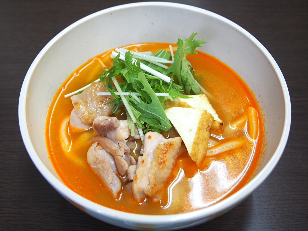 魚介出汁と鶏ガラをベースにしたスープのシンガポールの麺料理『ラクサ』をうどんにアレンジ♪
