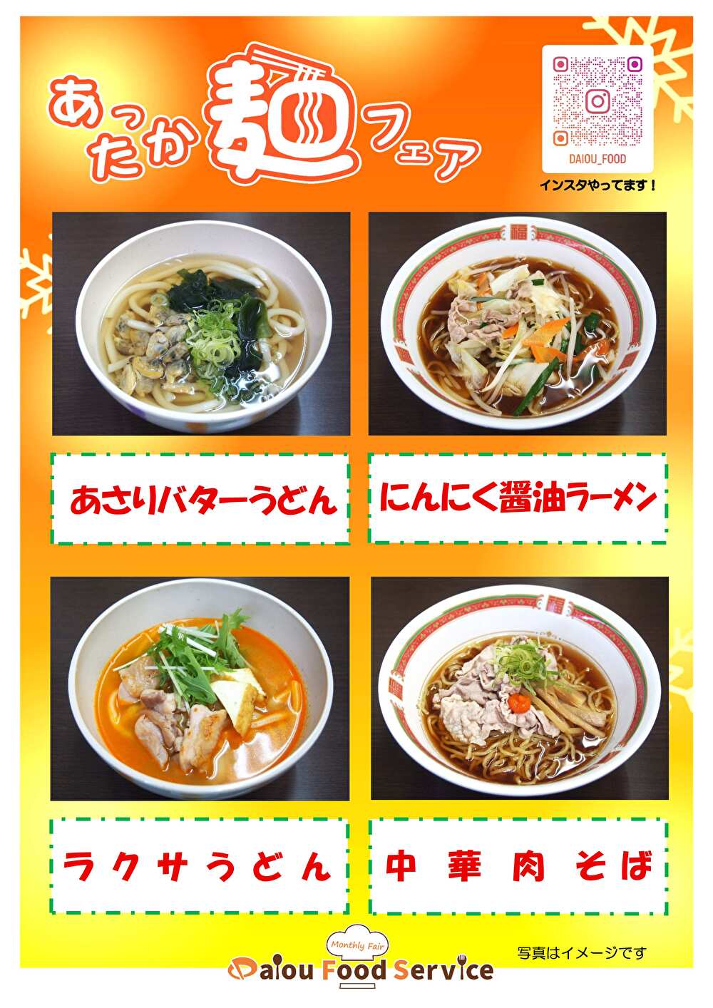 今回はあったか麺フェアを提供いたします。